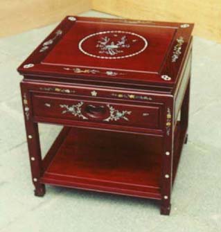 | EC 02 M A3 | ROSEWOOD END CABINET W/ MOTHER OF PEARL INLAID (1 DRAWER & 1 BELOW SHELF) | 22*22*23"H |