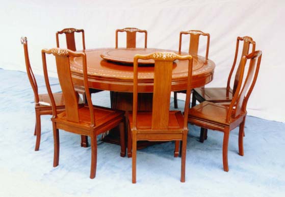 ROSEWOOD 60" ROUND DINING SET W/MOTHER OF PEARL INLAID(8 persons) |